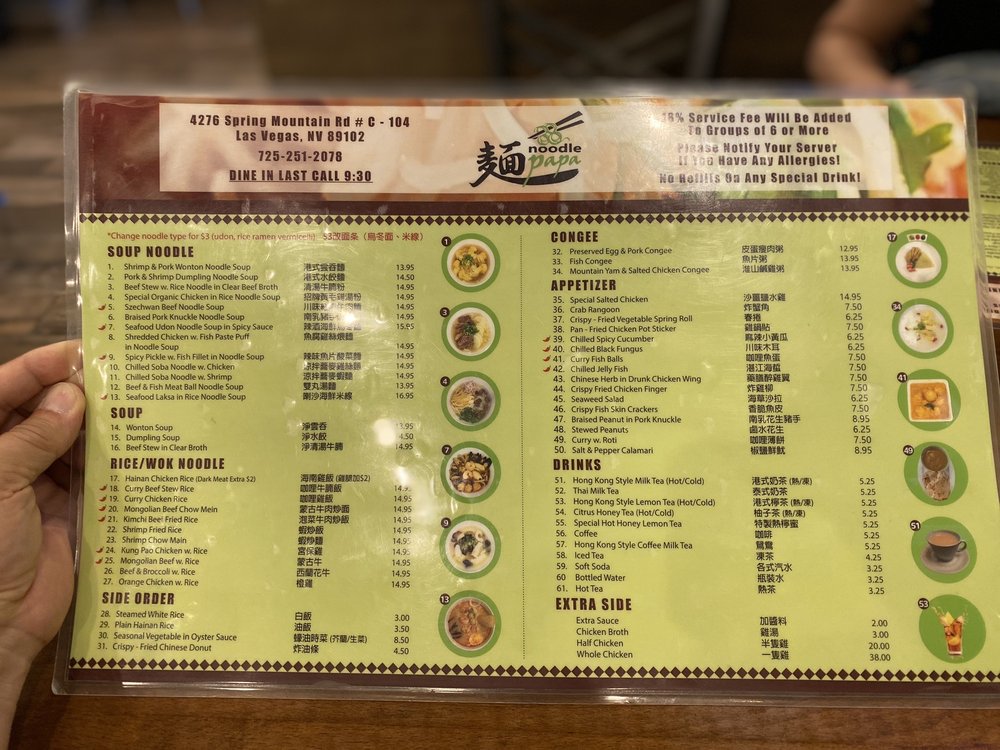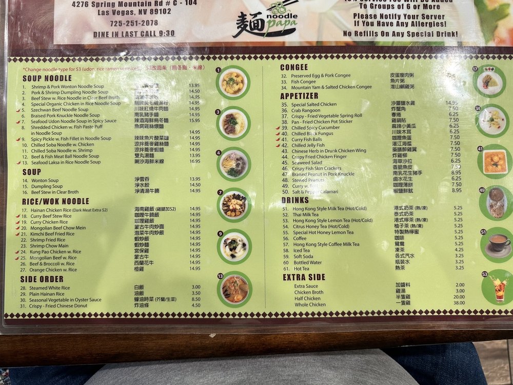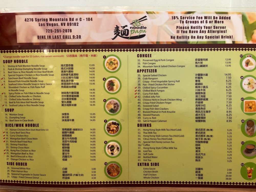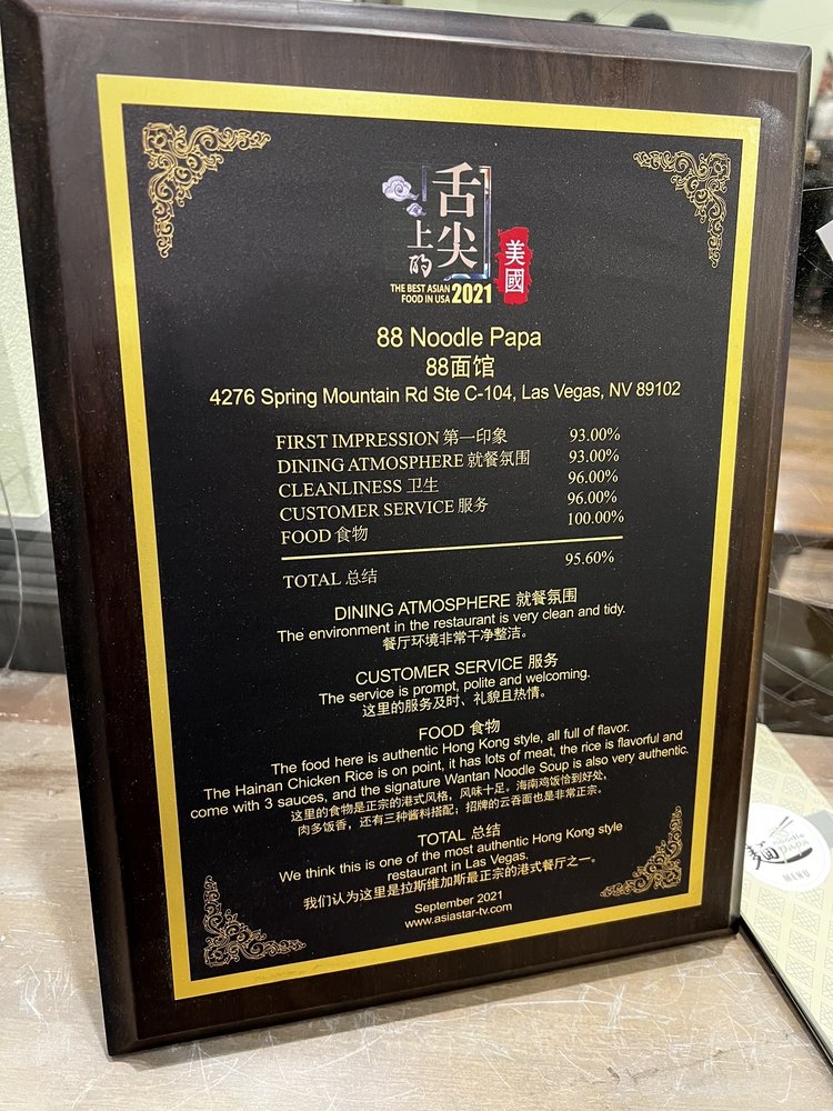 Introducing the menu at 88 Noodle Papa, a casual and wheelchair-accessible restaurant in Las Vegas offering a variety of Asian dishes. Specializing in soup noodles, try the Shrimp & Pork Wonton Noodle Soup or the Szechwan Beef Noodle Soup for a flavorful kick. For rice and wok noodle lovers, options like the Hainan Chicken Rice and Mongolian Beef Chow Mein are must-tries. Customer reviews rave about the flavorful dishes, with standout items like the Hainan Chicken Rice being a crowd favorite. The cozy atmosphere and friendly staff make dining here a pleasant experience. If you're looking for authentic Hong Kong style wonton noodles, 88 Noodle Papa is the place to be.